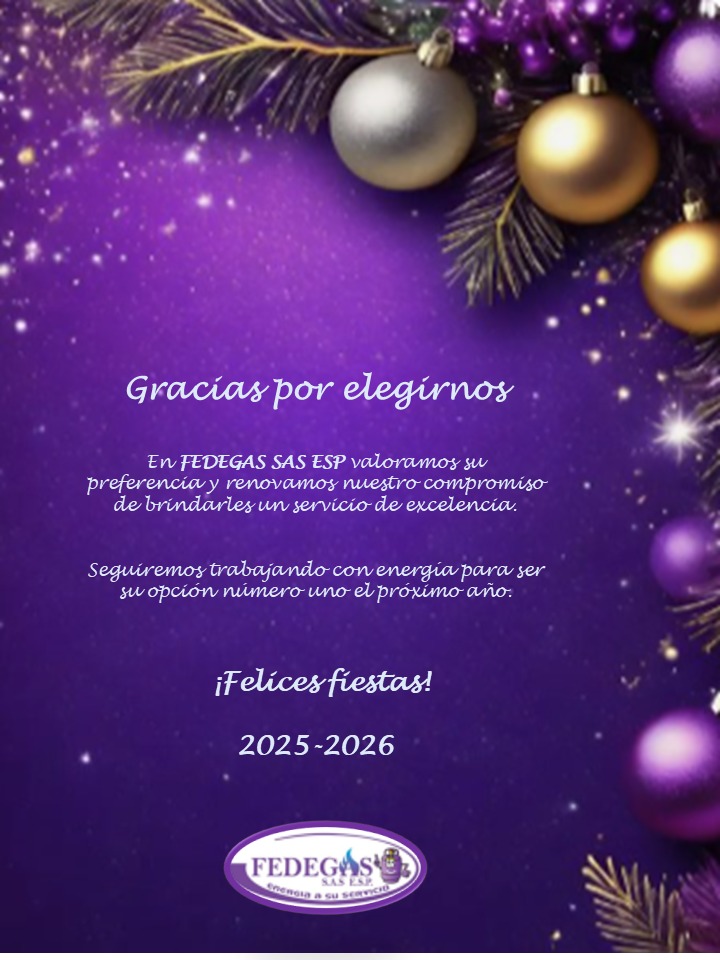 FEDEGAS S.A.S E.S.P en el año 2026 será lider en el cumplimiento de las metas proyectadas en su plan de negocio, así mismo será reconocida en el departamento de antioquia por su buen servicio, calidad en los productos, medida exacta, compromiso y profesionalismo de su talento humano, así como el mejor lugar para trabajar.